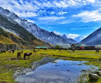 Drive to Pahalgam, a picturesque town located at the confluence of Lidder and Sheesh streams. Visit the scenic Betaab Valley and Aru Valley, known for their lush green meadows, pine forests, and crystal-clear streams. Explore local villages and interact with shepherd communities, or opt for a gentle riverside walk. Return to Pahalgam for dinner and overnight stay.