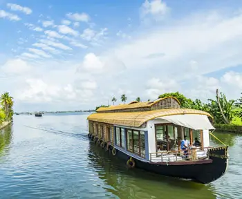 Travel to Alleppey and board your private luxury houseboat, a traditional kettuvallam equipped with modern comforts and a personal chef. Cruise gently through Kerala’s iconic backwaters, passing rice paddies, fishing villages, and coconut groves. Dine on deck and sleep to the sound of water lapping beneath you.